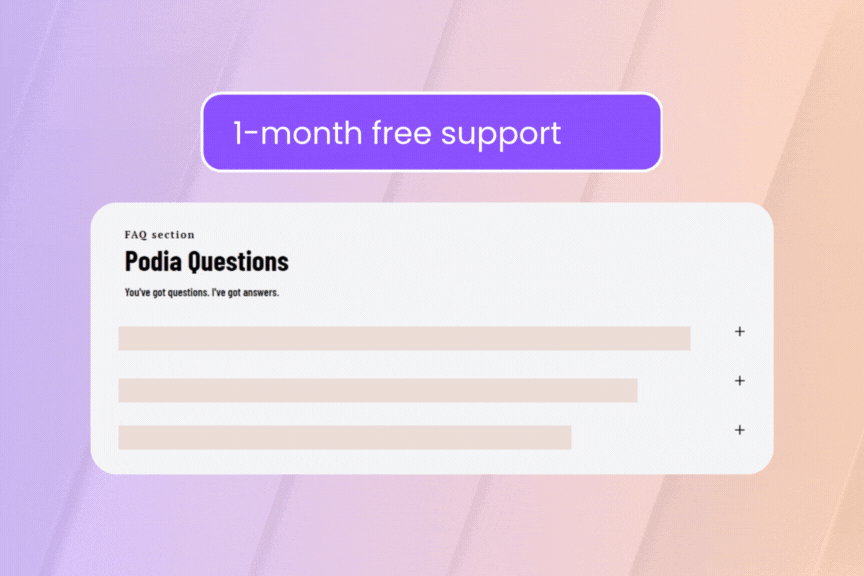 Podia is user-friendly, but that doesn’t mean you want to deal with the constant maintenance and updates. When you hire me, you’re not just getting a beautiful website - you’re getting peace of mind because I have access to speedy dedicated customer support courtesy of being a Podia Pro.