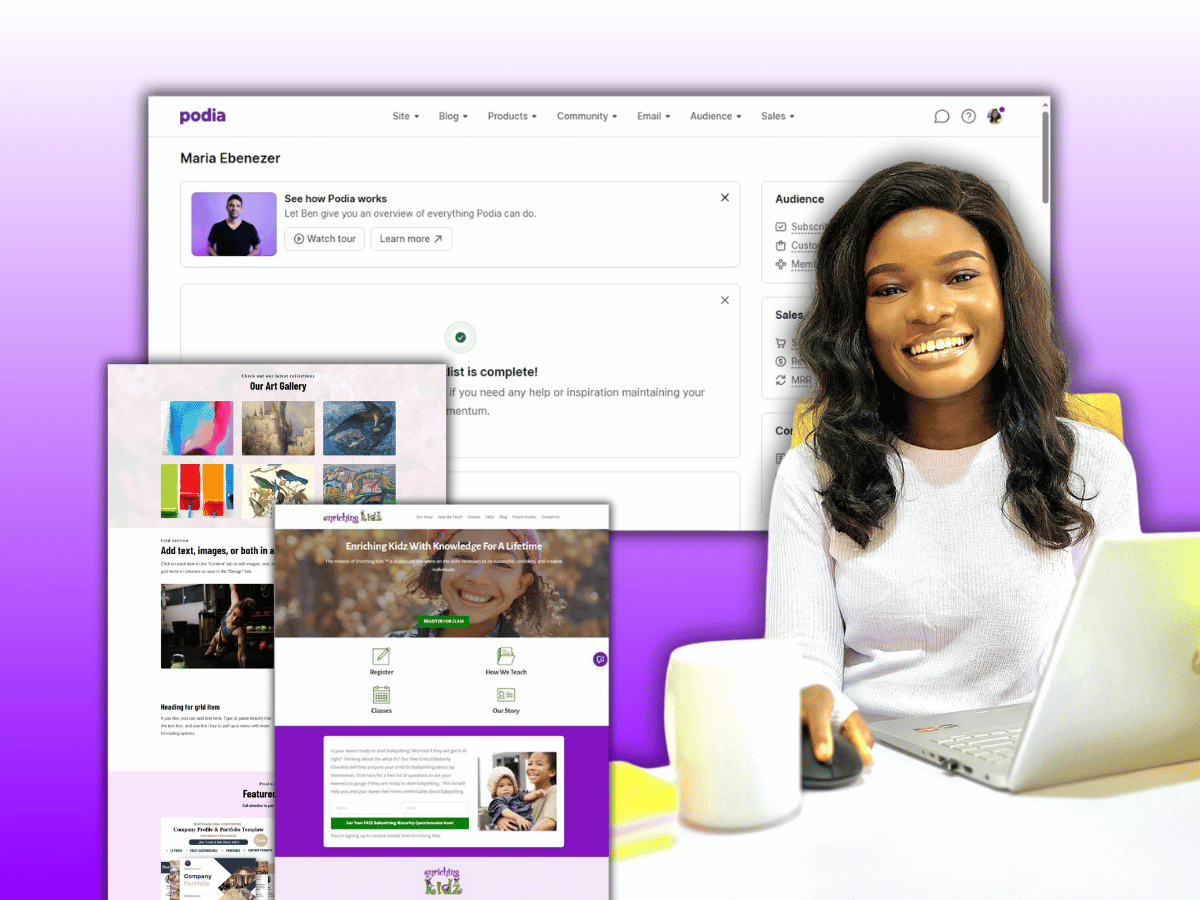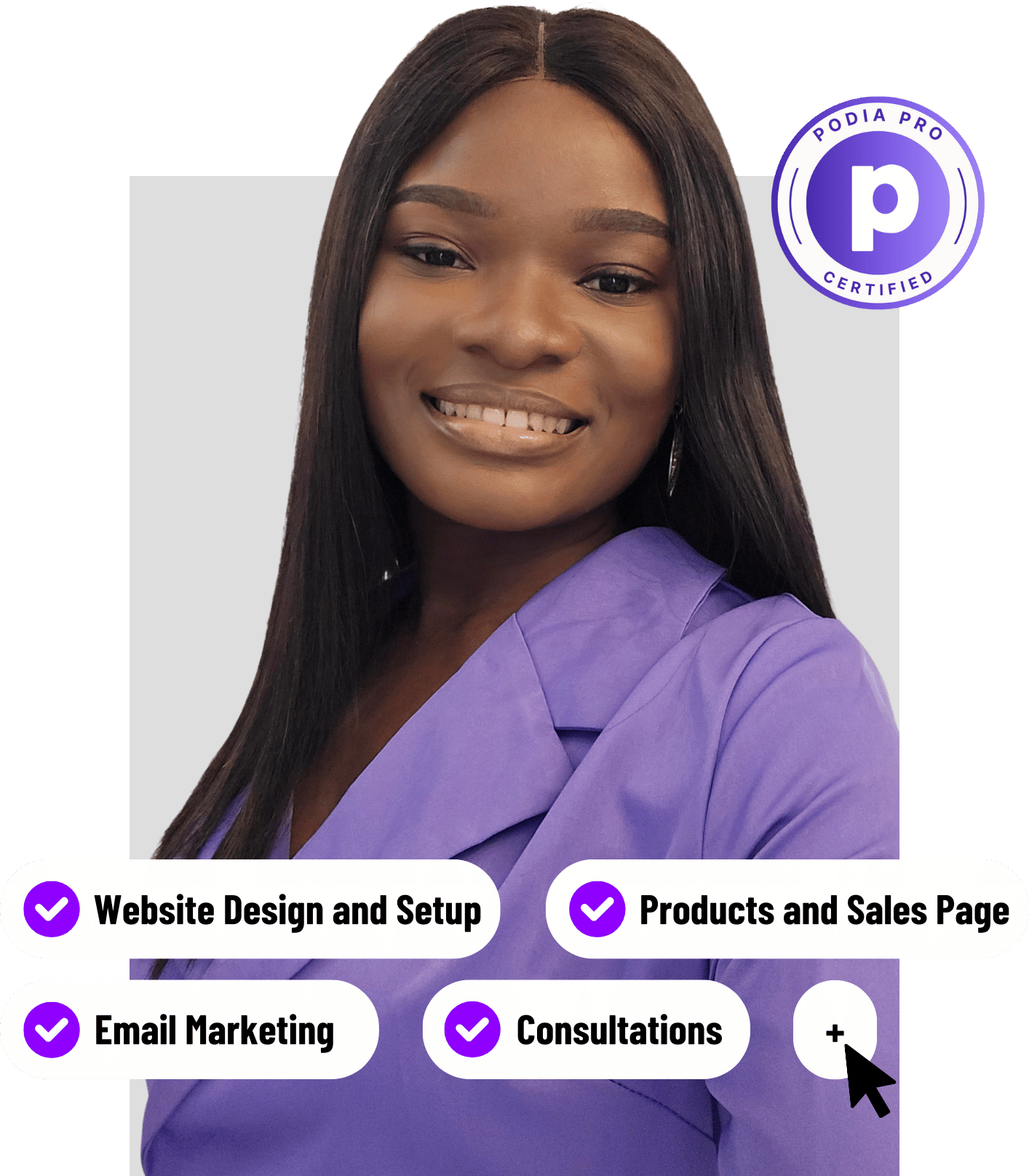 With a certified Podia Pro like me, you get the expertise and strategy needed to nail it from the get-go. No fumbling around with confusing settings or trying to troubleshoot wonky layouts. I’ve got the experience to create a website that looks great and functions seamlessly on the first try. No redos, no headaches.
